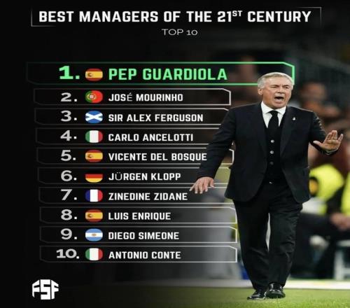 这份《21世纪最佳主教练TOP10》里,最“站得住”的部分其实很清晰:瓜迪奥拉、安切洛蒂、穆里尼奥放在最前面,属于不管你偏爱哪种标准,都很难把他们排出第一梯队的那种人。瓜迪奥拉代表的是体系与统治力,安切洛蒂代表的是欧冠级别的稳定兑现,穆里尼奥则是“在不同联赛、用不同方式都能把冠军拎起来”的那条线。克洛普、齐达内、西蒙尼进前10也正常:一个把俱乐部带到长期高峰,一个欧冠三连这块牌子太硬,一个把同一支球队打磨成了长期强队。